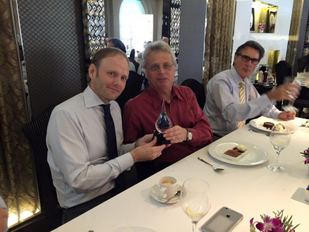 On 31 March 2015, the SRA Executive Committee (EXCO) hosted a farewell luncheon at the Senso Restaurant on Club Street in honour of Mr Olivier Massot, who was stepping down after serving as an EXCO member for 12 terms from 2003 to 2015. After a four-course lunch, the SRA Chairman, Mr Thomas Lillelund presented Mr Massot with a crystal ‘teardrop’ shaped plaque as a token of appreciation for his long and dedicated service to the Association.